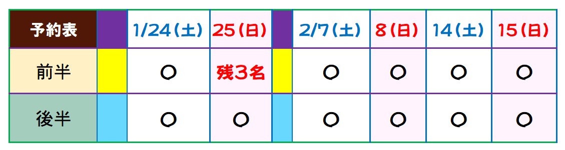 (〇は十分空きがあります。×は定員に達していて予約できません。1月22日更新